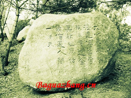 山顶巨石上篆刻的《老子道德经》,颜体楷书,略带魏风,圣经山因此而得名。